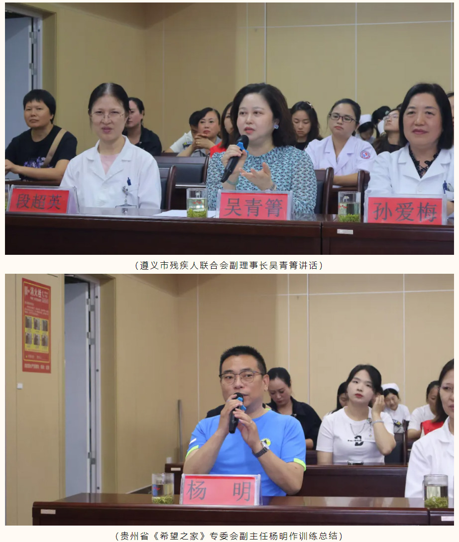 遵義市殘疾人聯(lián)合會(huì)副理事長吳青箐,貴州省《希望之家》專委會(huì)副主任楊明,遵義醫(yī)投康復(fù)醫(yī)院副院長孫愛梅,遵義遵投洪善堂醫(yī)療管理有限公司總經(jīng)理孫良,遵義醫(yī)投康復(fù)醫(yī)院相關(guān)負(fù)責(zé)人以及希望之家生活重建培訓(xùn)班的全體人員參加。