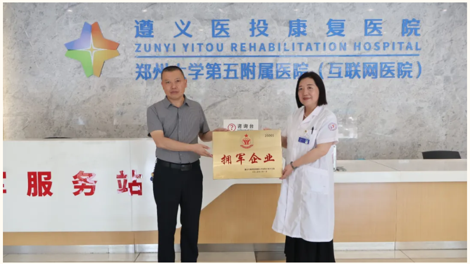 2025-08-028月1日,在“八一”建軍節(jié)這個特殊的日子里,遵義市播州區(qū)退役軍人事務(wù)局黨組成員、副局長梁開武、蒞臨遵義醫(yī)投康復(fù)醫(yī)院,舉行了“擁軍企業(yè)”授牌儀式。遵義市播州區(qū)退役軍人事務(wù)局雙擁工作聯(lián)系人茍行龍、播州區(qū)龍坑街道退役軍人服務(wù)工作人員陳峰、遵義醫(yī)投康復(fù)醫(yī)院副院長孫愛梅以及醫(yī)院有關(guān)職能部門負責(zé)人參加儀式。