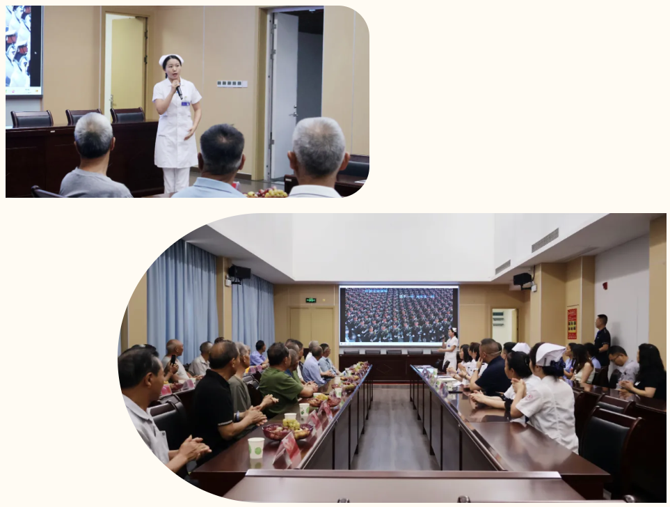 老兵們?cè)诮涣髦校布娂姶蜷_了話匣子,緩緩講述著自己當(dāng)年在軍營里的熱血故事,從槍林彈雨的戰(zhàn)場(chǎng)到艱苦卓絕的訓(xùn)練,每一個(gè)片段都飽含著對(duì)祖國的忠誠與熱愛,聽得在場(chǎng)的醫(yī)護(hù)人員心潮澎湃。并且住院老兵在發(fā)言中表達(dá)了衷心的感謝。大家認(rèn)真聆聽,不時(shí)報(bào)以熱烈的掌聲,向這些可敬的老兵表達(dá)深深的敬佩。