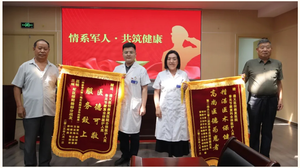 活動(dòng)的尾聲,更顯溫情。住院老兵們?yōu)榱烁兄x醫(yī)院一直以來的精心治療和貼心關(guān)懷,特意制作了錦旗,鄭重地送到了醫(yī)院負(fù)責(zé)人手中。錦旗上 “醫(yī)德可敬,服務(wù)至上”“精湛醫(yī)術(shù)保健康,高尚醫(yī)德為患者”的字樣,不僅是對(duì)醫(yī)院醫(yī)療技術(shù)和服務(wù)質(zhì)量的高度認(rèn)可,更是軍民之間深厚情誼的生動(dòng)見證。